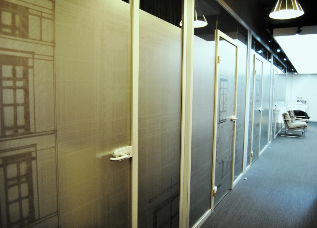 Цельностеклянные перегородки NAYADA-Crystal использованы для всех помещений офиса: кабинеты, переговорные, служебное помещение.