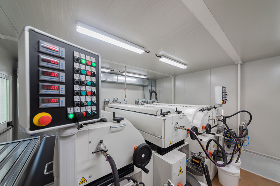 - Высокая скорость нанесения: новая линия работает с производительностью до 1 500 м2 за смену!