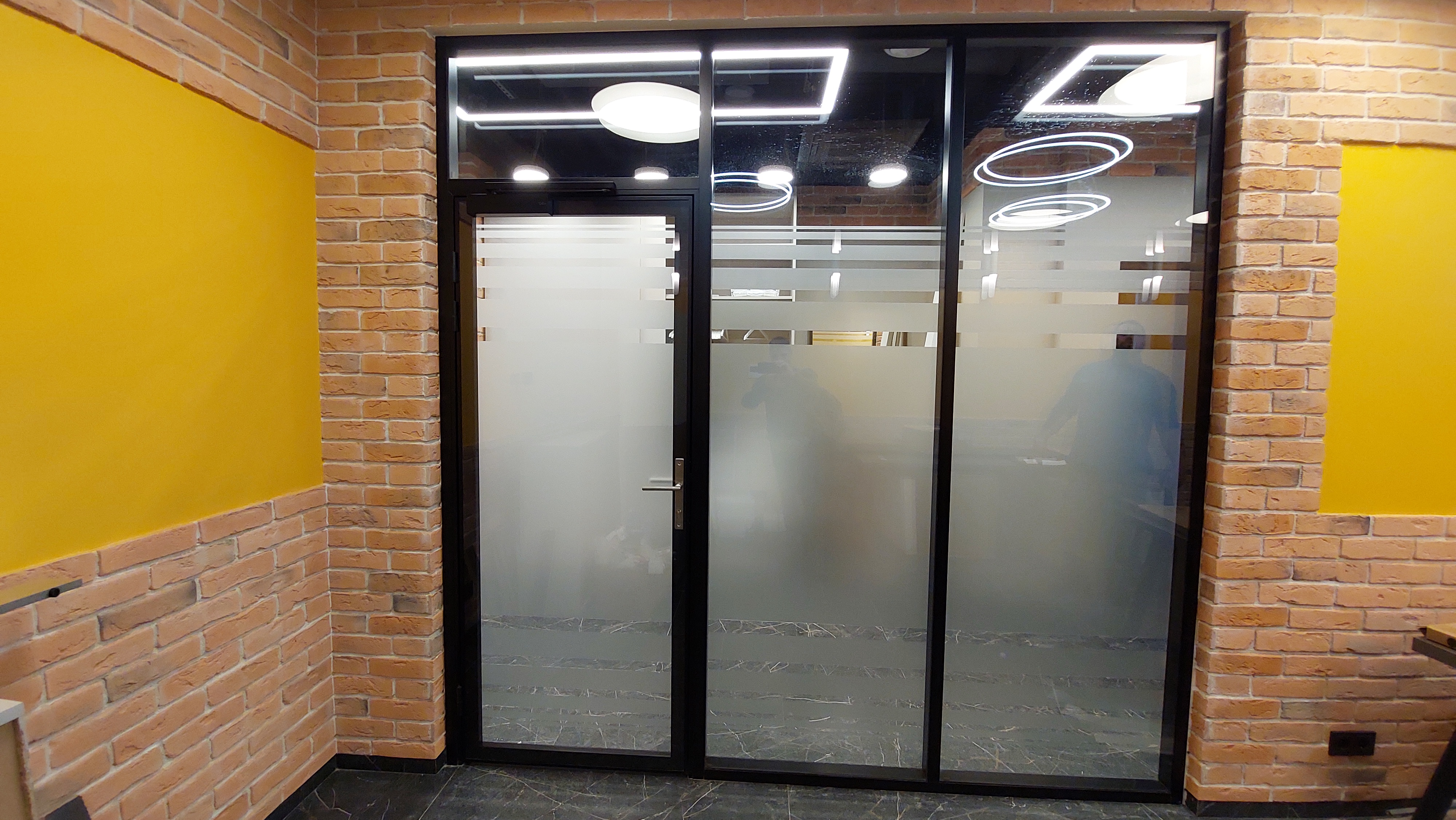 В других зонах офиса установлены перегородки с остеклением NAYADA-Standart. Для входов в отдельные помещения выбраны скрытые двери NAYADA-Stels.