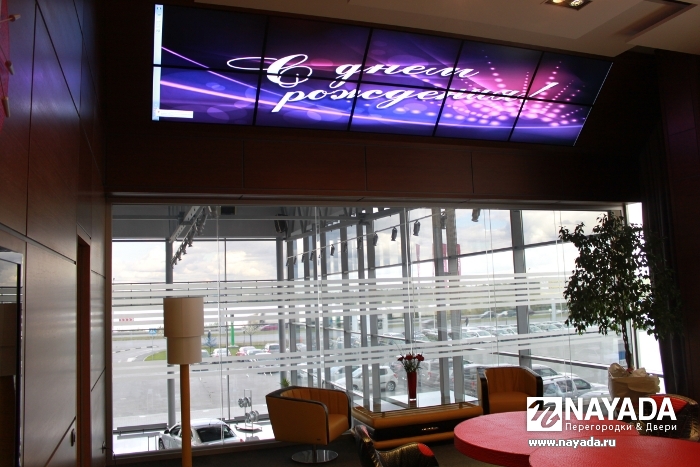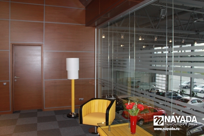 В стеклянную перегородку NAYADA-Double Crystal между стеклами наша компания установила автоматически управляемые жалюзи.. Не смотря на крайне сжатые сроки для такаго проекта, Наяда-Тюмень с успехом выполнила взятые на себя обязательства и сдала проект в срок.