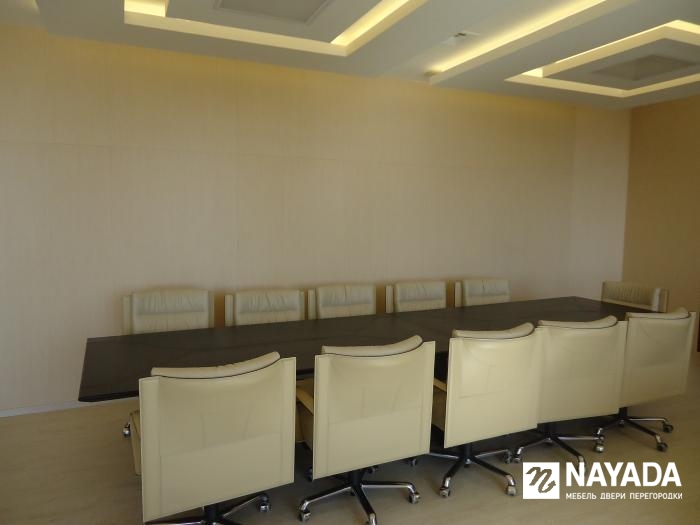 На 5 этажах здания были устнановленны перегородки офисные кабинетные Nayada-Standart Lite с гипсовиниловым покрытием, выполнена облицовка стен негорючими панелями из стекло-магниевого листа на базе перегородок Nayada-Raumann, в кабинетах руководителей установлены эксклюзивные шпонированные панели Nayada-Regina Line.